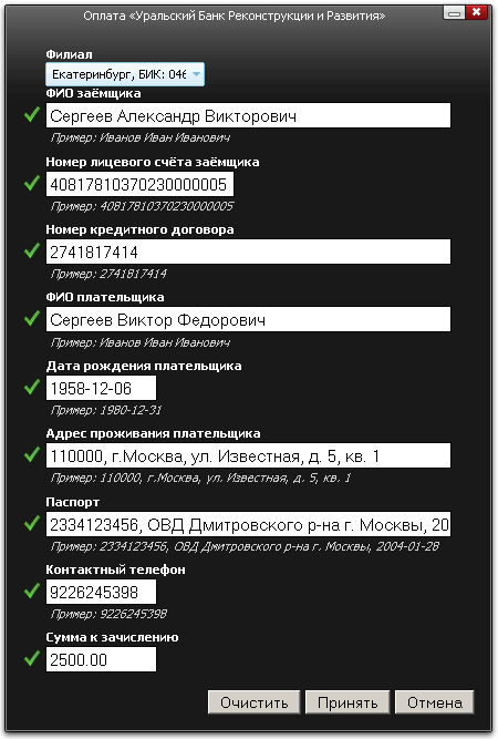 Оплата «УБРР (Уральский Банк Реконструкции и Развития)»